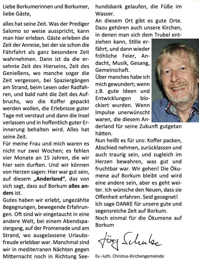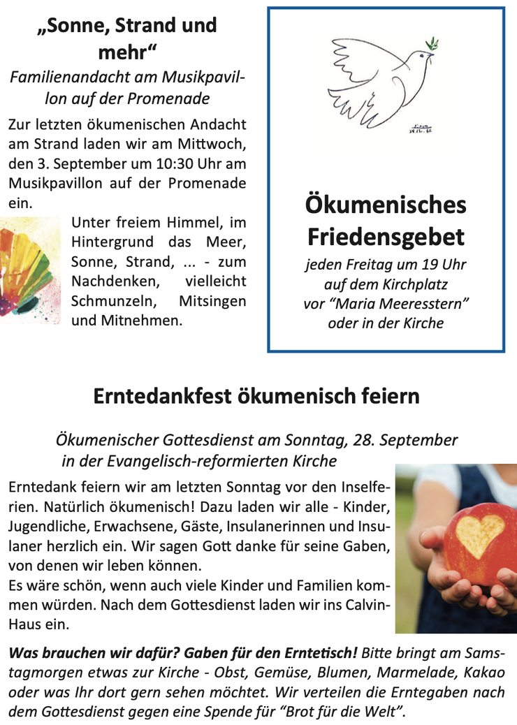 einen Überblick aus allen Gemeinden der Ökumene auf Borkum (sofern die